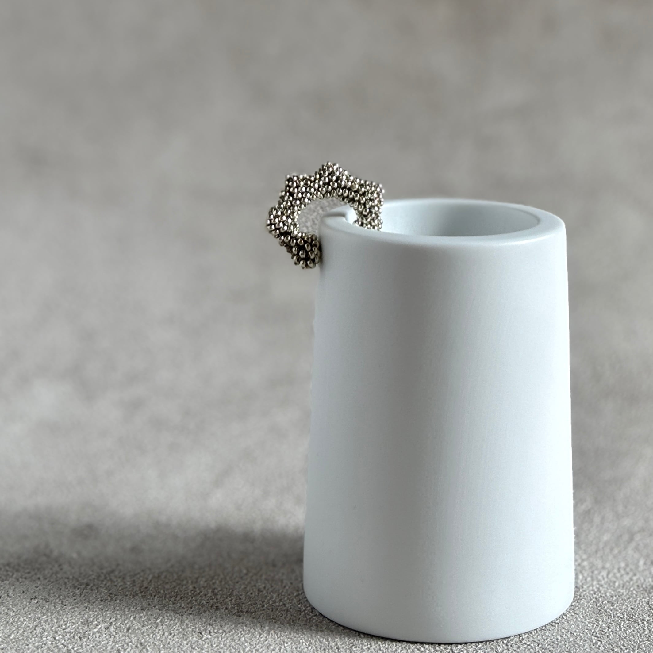 粒の連なりが光を受けて、ひそかに光るイヤーカフ。